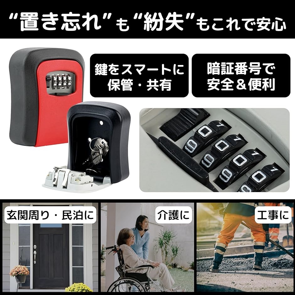 暗証番号を設定することで、合鍵を安全に共有でき、介護・シェアハウス・工事現場など幅広い場面に対応します。