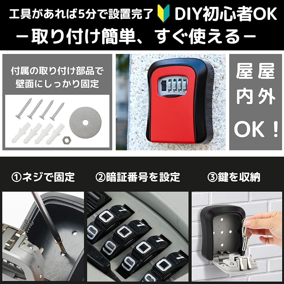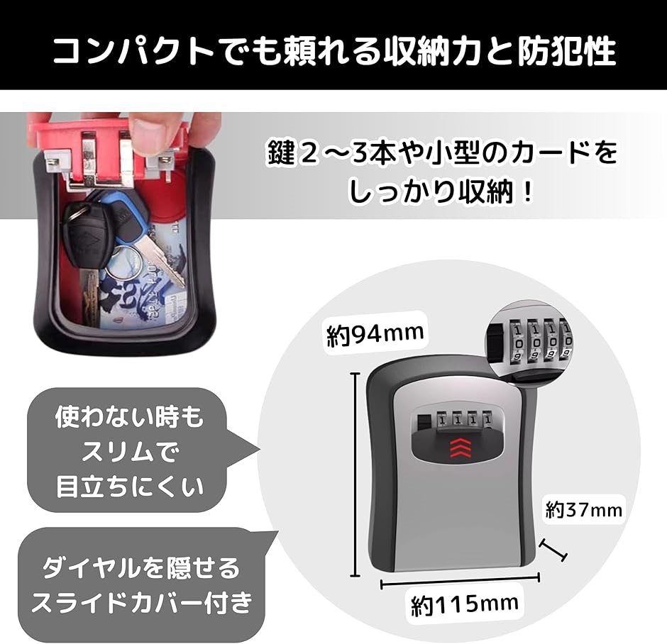 | 商品名 | キーボックス ダイヤル式 鍵収納 屋外 壁掛け 小型 セキュリティボックス 防犯 キーbox 暗証番号 収納ケース |