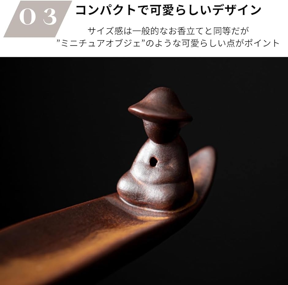 「釣り人と船のユニークなモチーフ」釣り人が船の上で釣り糸を垂れているような造形になっており、一般的な「平皿型」の線香皿とは一味違う。和室はもちろん、洋室・書斎・リビングなどどんなインテリアにもマッチします。
