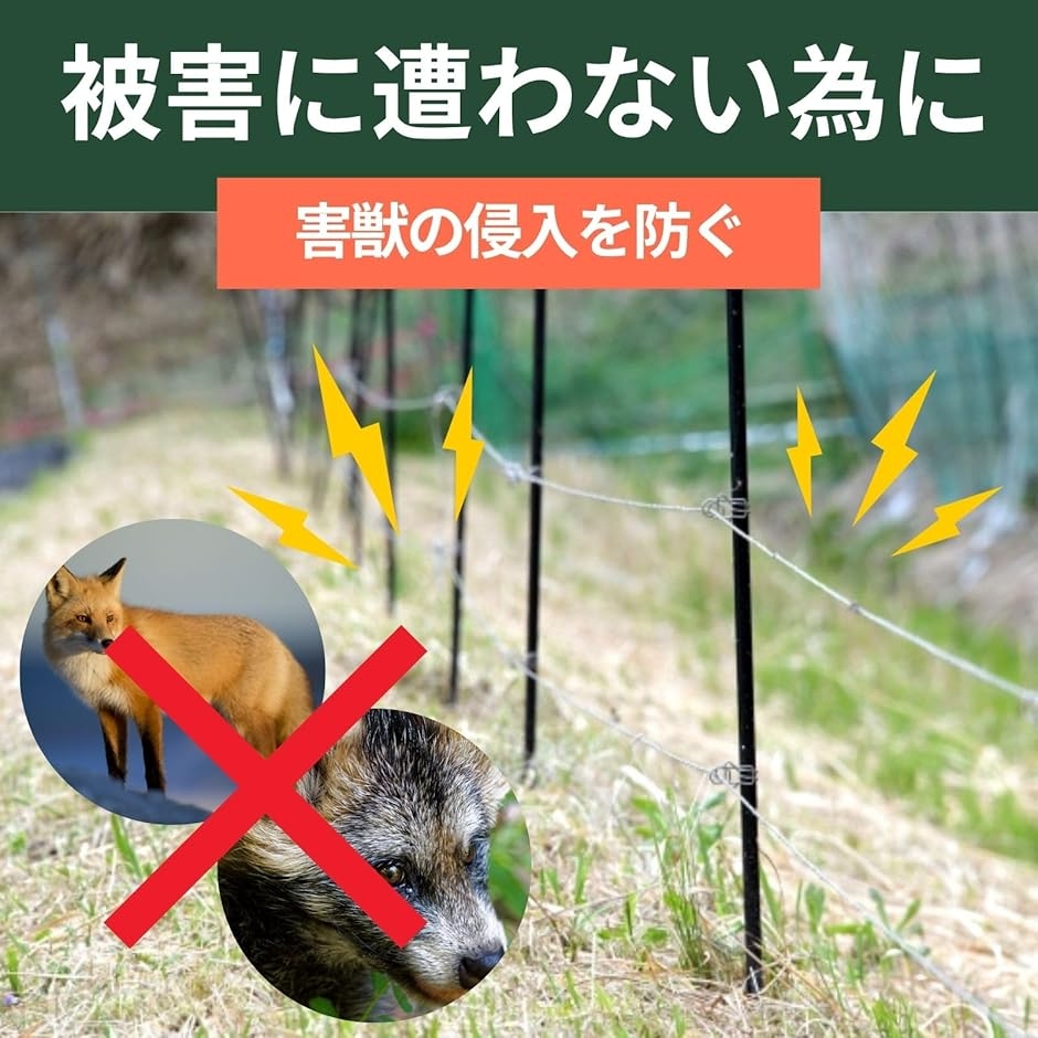 特にイノシシ・シカ・アライグマなどの中型獣への対策として効果的で、電圧ロスの少なさから長距離囲いに向いています。