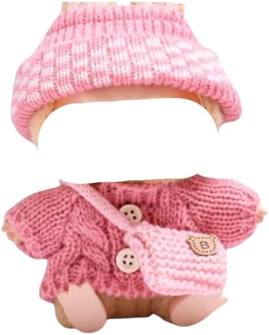 v ラブブ専用のニットコーデセットは、あったかニット帽、ボタン留めデザインのセーター、ハンドメイド感あふれるバッグが揃ったおしゃれアイテム。