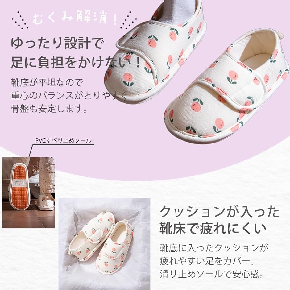 \可愛くて履きやすい、毎日にうれしい介護シューズ/ 高齢者の方やリハビリ中の方に向けた、女性用の軽量室内履きシューズです。