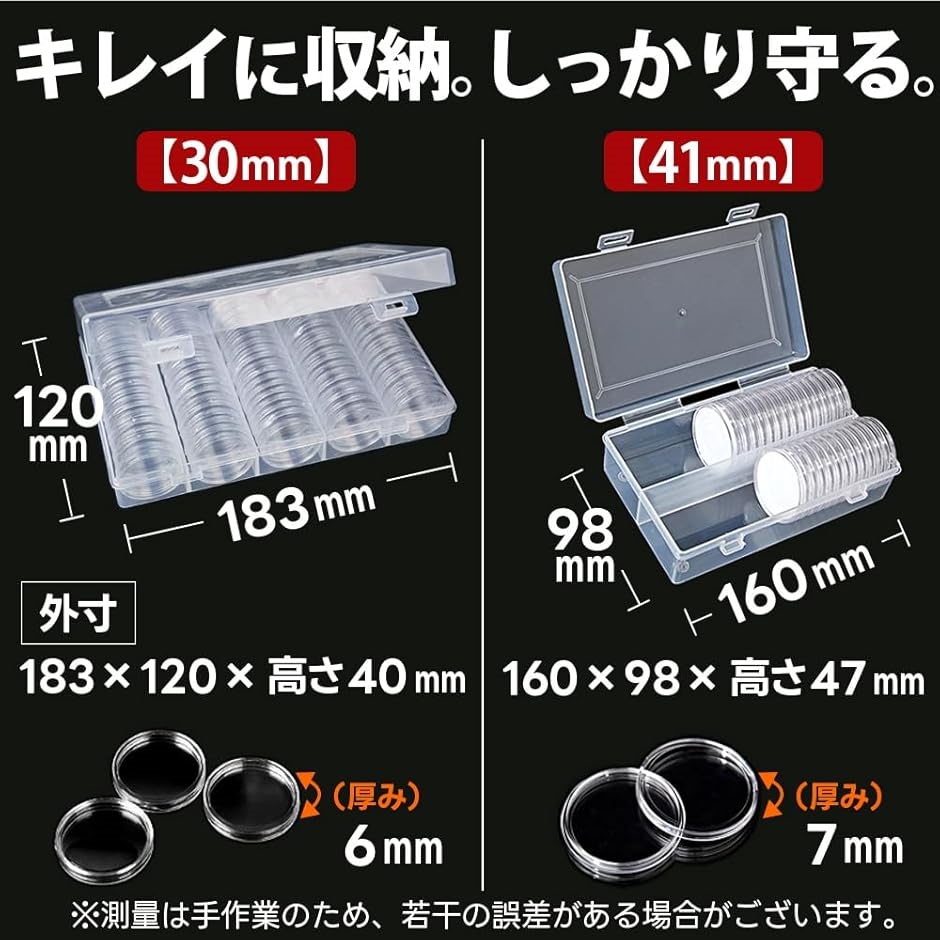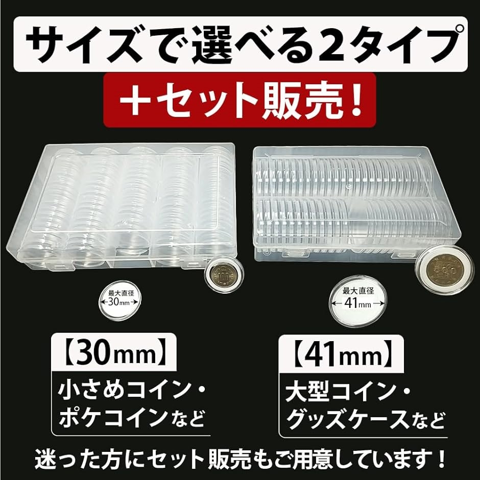 「30mmタイプ」は[17・20・25・27・30mm]、「41mmタイプ」は[19・20・22.25・25・27・30・38.5・41mm]のコインに対応しています。