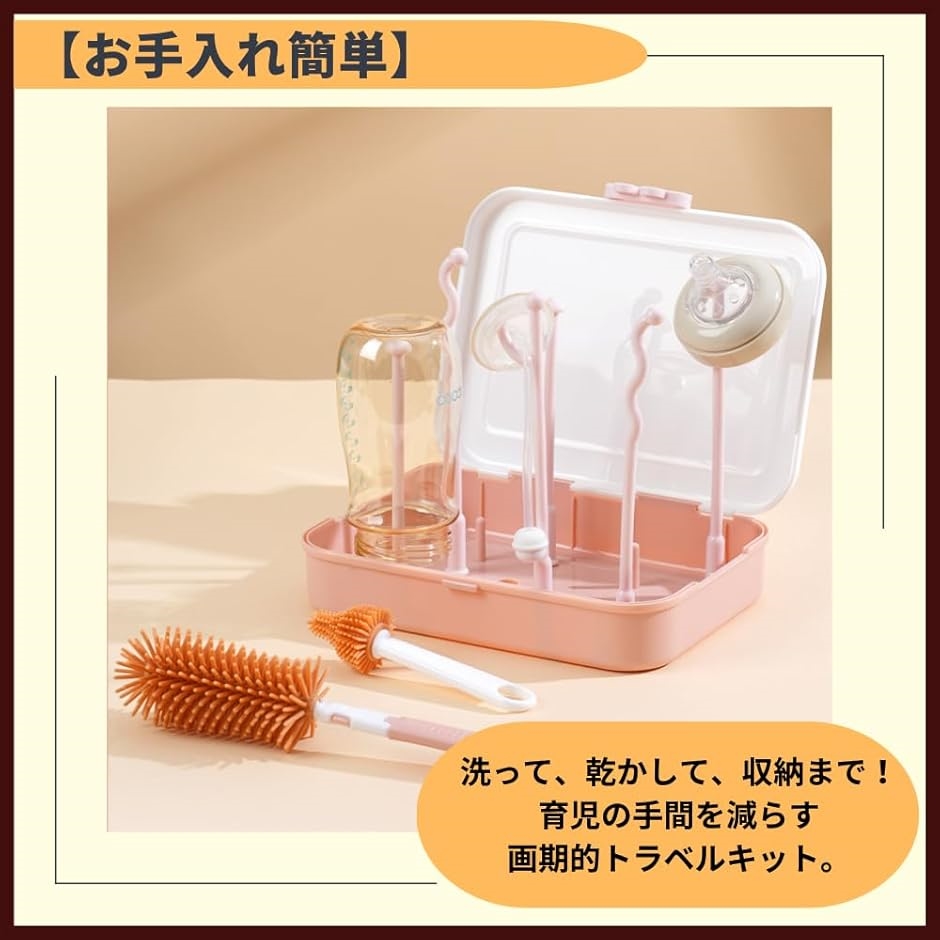 「旅行にも最適」旅行や外出先での哺乳瓶洗浄もこれ一つでOK。手軽に持ち運べる6点セット。