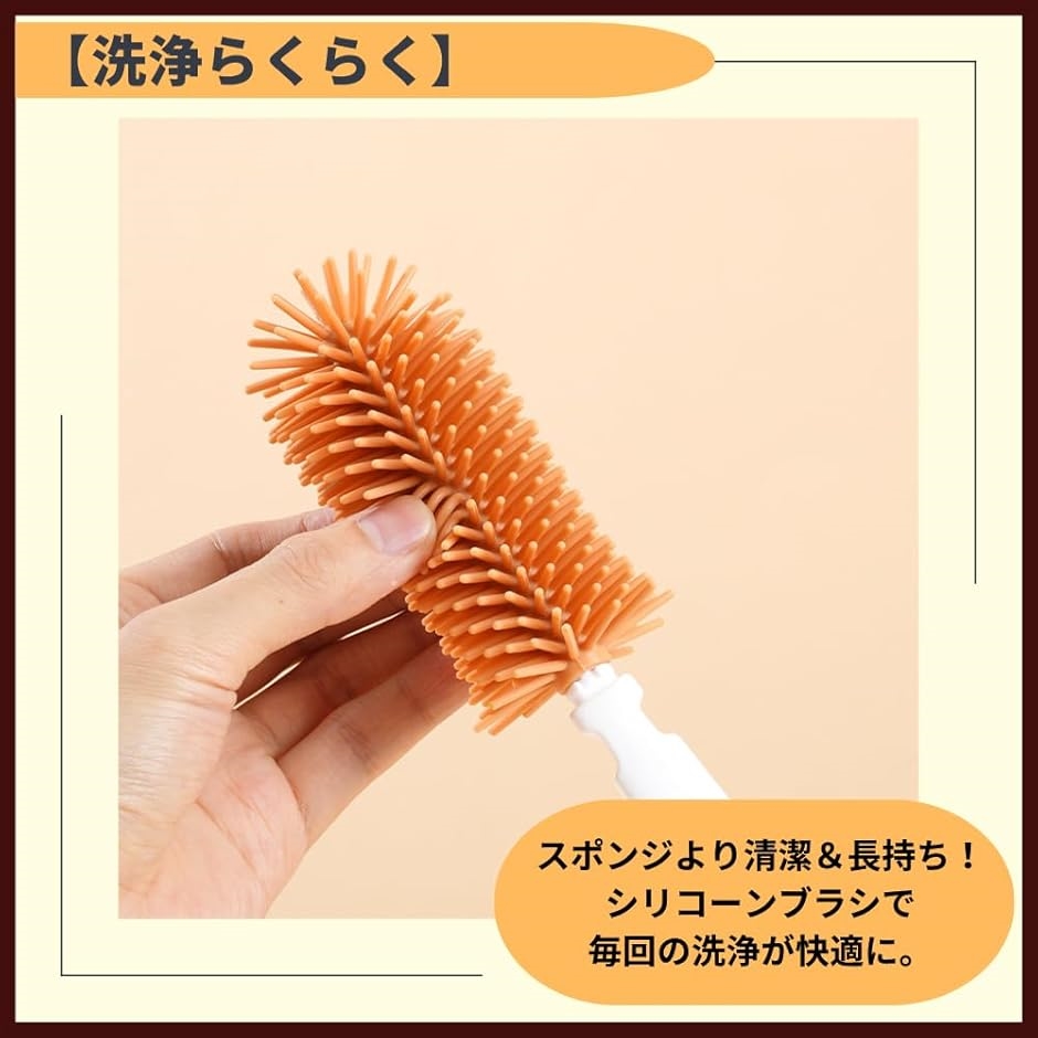 「洗浄らくらく」スポンジより清潔&長持ち。シリコーンブラシで毎回の洗浄が快適に。