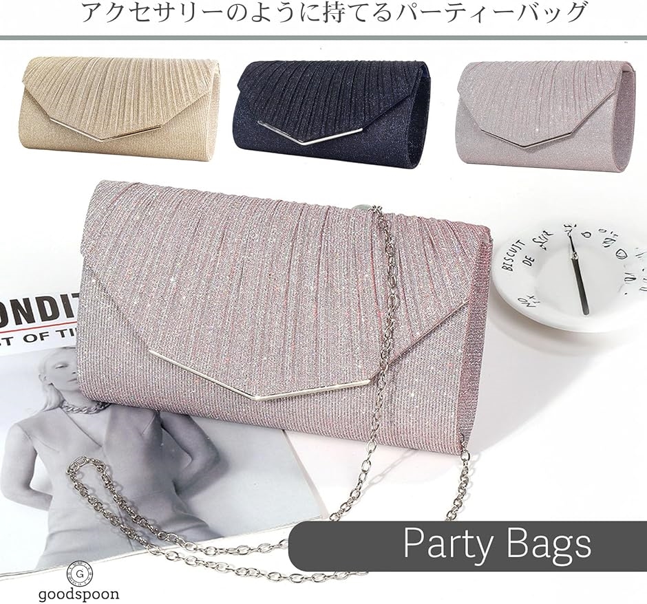 イベントやフォーマルなシーンであなたの個性を引き立てる、美しいプリーツデザインのパーティーバッグ。