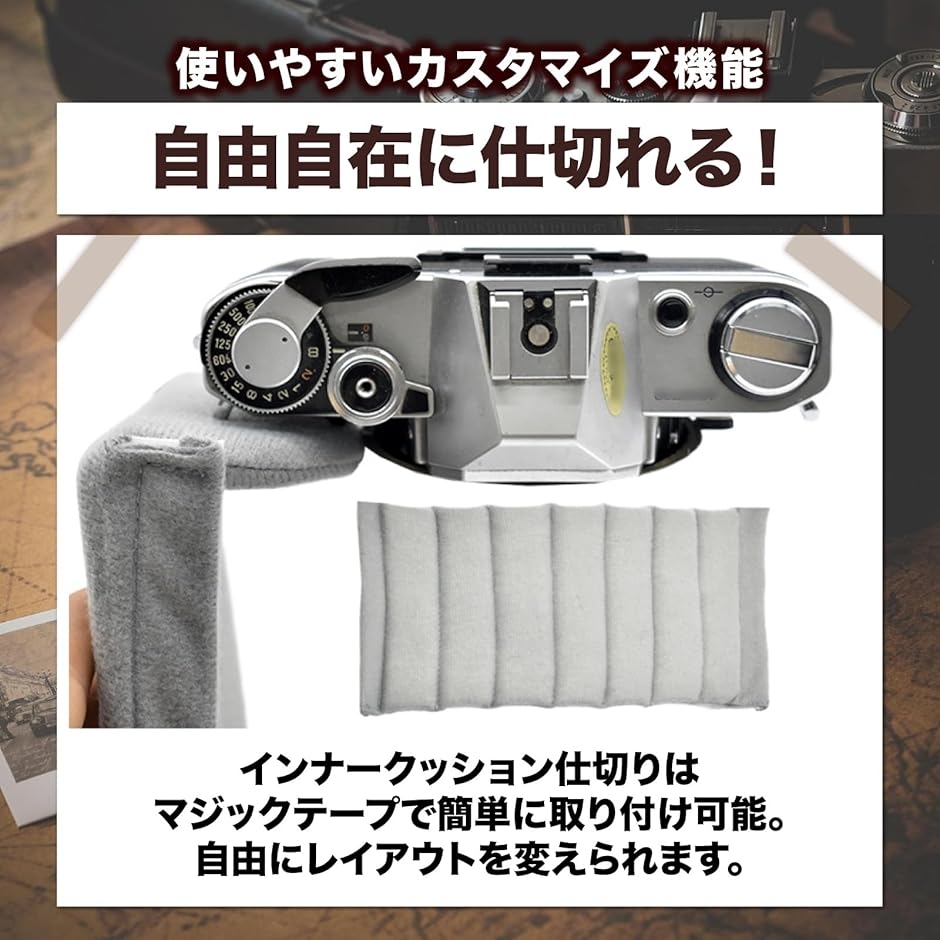 収納するカメラ本体やレンズ、小物に合わせて自由にレイアウトを変えられます。