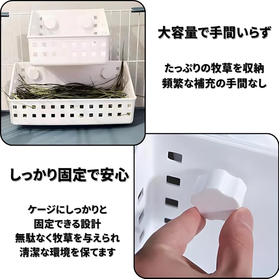 「しっかり固定で安心」ケージにしっかりと固定できる設計により、食事中にフィーダーが動くことなく、牧草がこぼれる心配もありません。