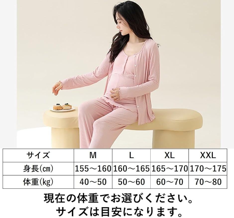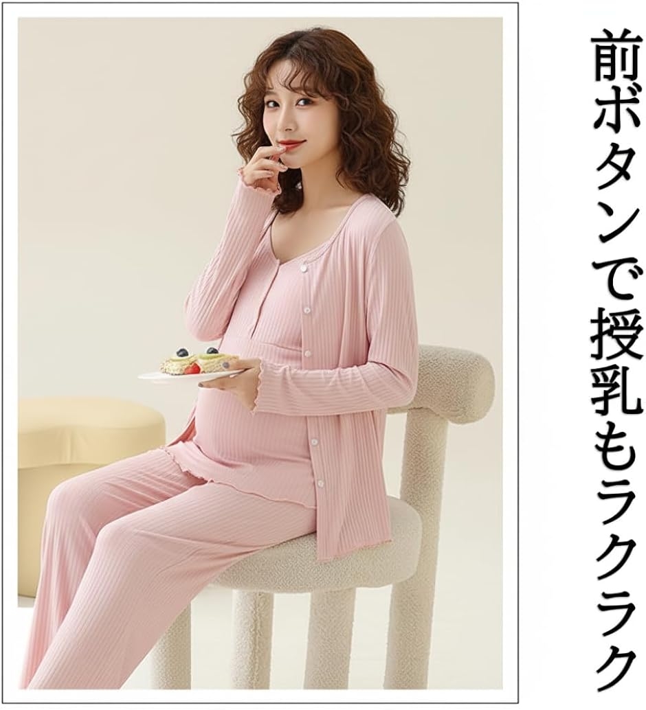 ふんわりとした肌触りのマタニティパジャマ三点セットは、妊娠中から授乳期までご利用いただけるアイテムです。