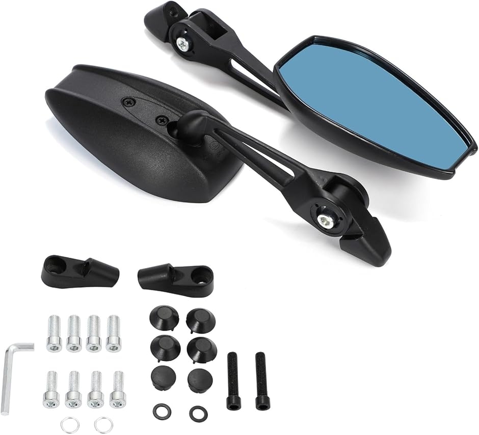 | 商品名 | 互換品バイク ミラー 汎用 アルミ 左右セット ブラック ブルーミラー 角度調整 GB350S GSX400 CB400SF Z400 ZRX1100 XJR1200 レブル250 Z250 CB250R MT-25 |