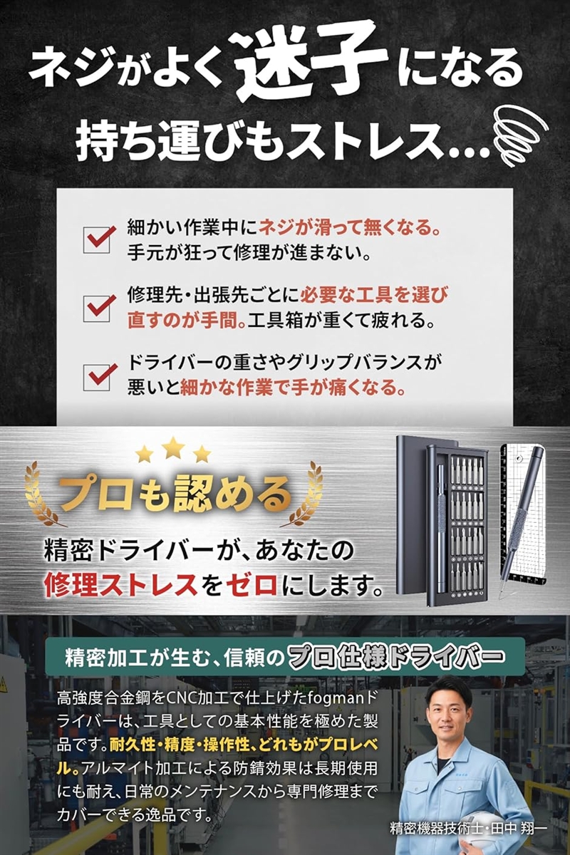 | 商品名 | 精密機器技術士監修 精密ドライバー トルクス プラス マイナス 星型 六角レンチ 工具セット メガネ用 |