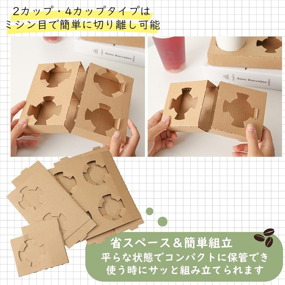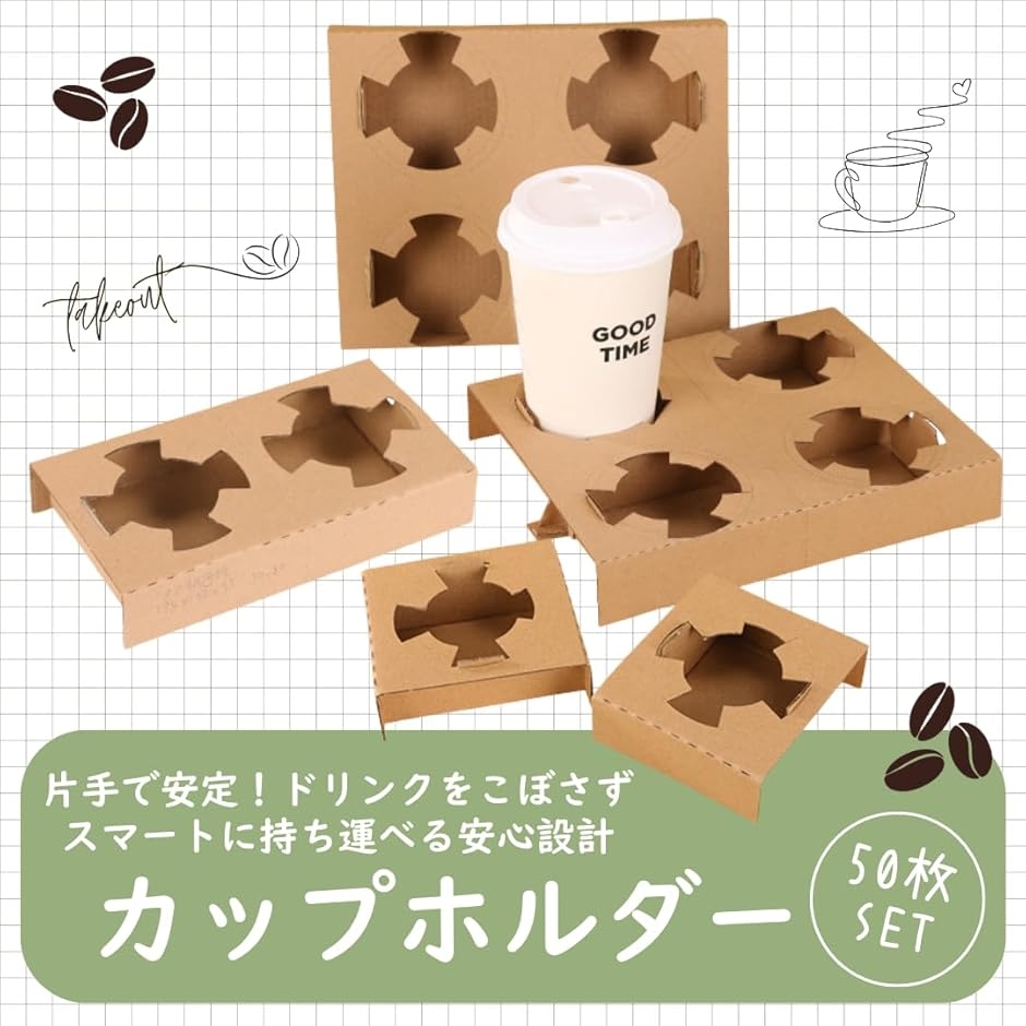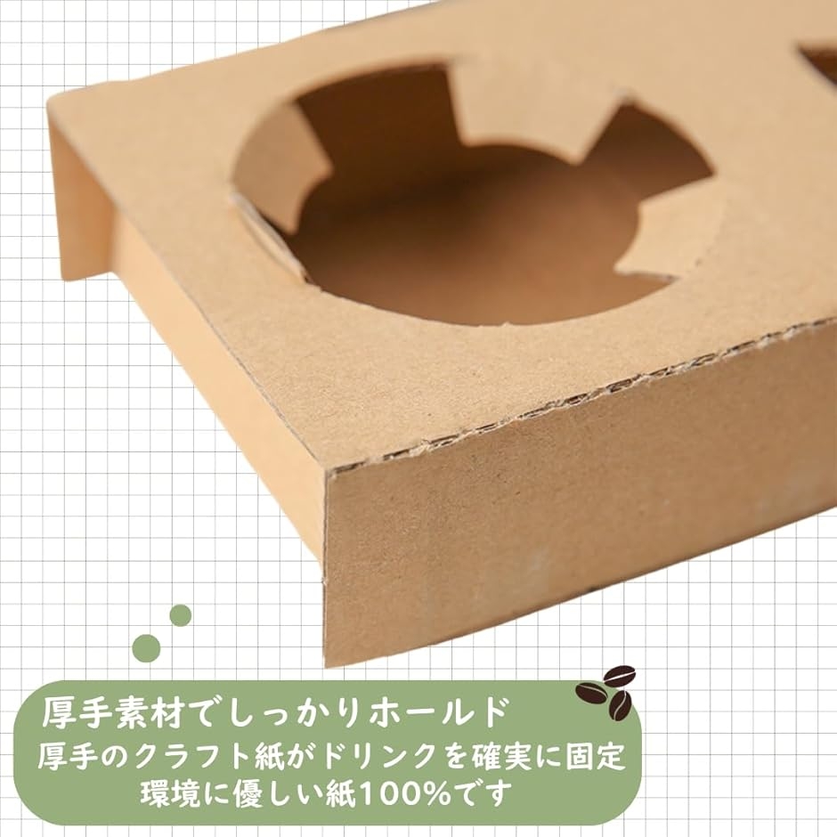 「片手で安定、便利なドリンクホルダー」コーヒーやスープなどのテイクアウトに最適な、使い捨てドリンクホルダーです。