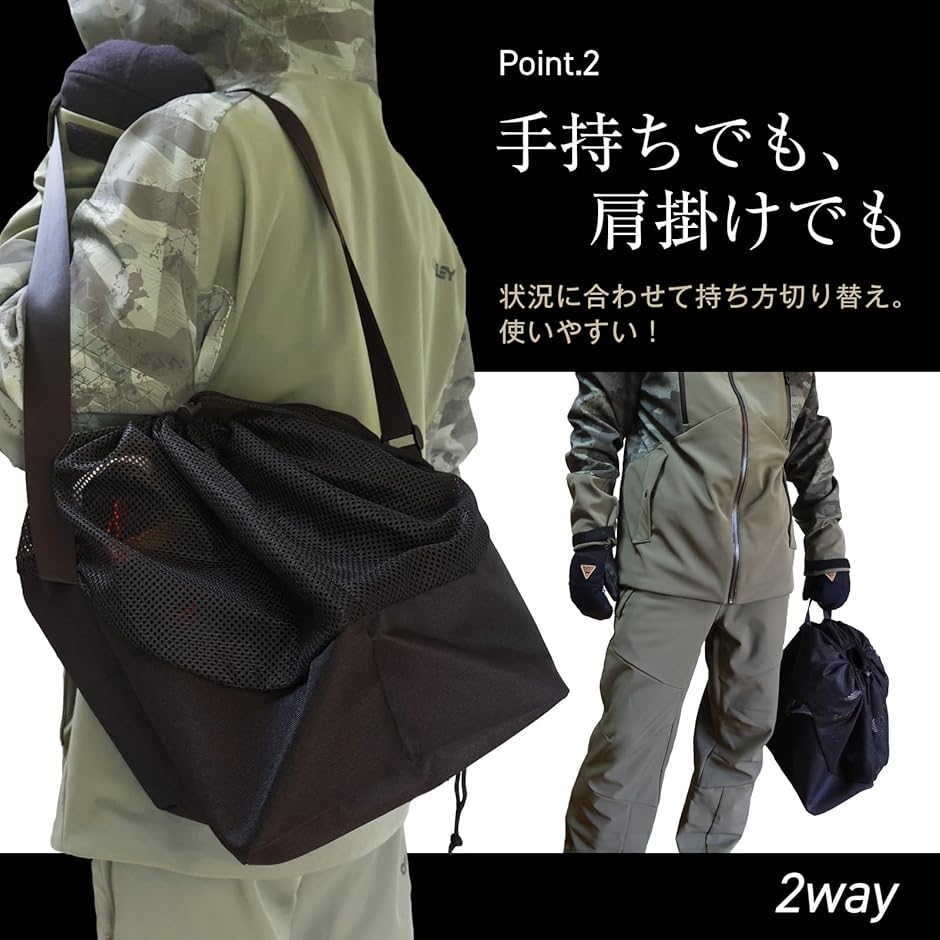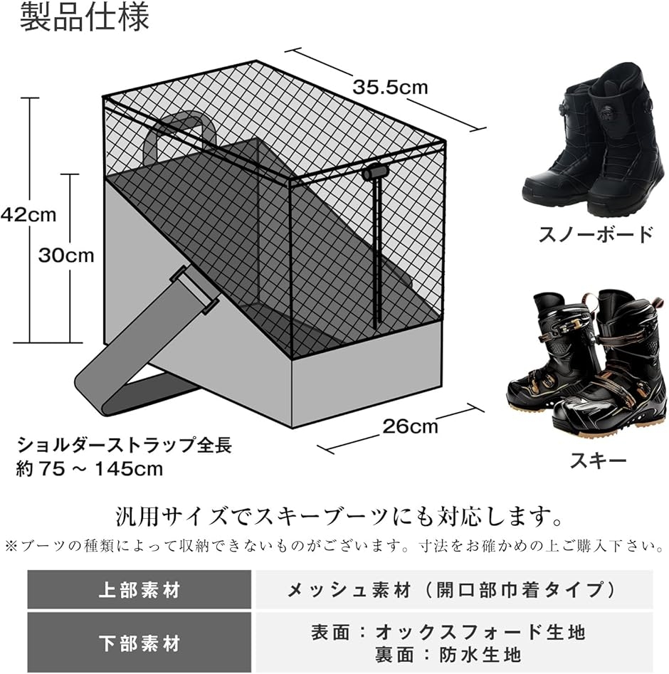 「商品仕様」幅:26cm、長さ35.5cm、高さ42cm(巾着を閉める前)、ショルダーストラップ:75〜145cm *ブーツによっては収納できない物もございます。