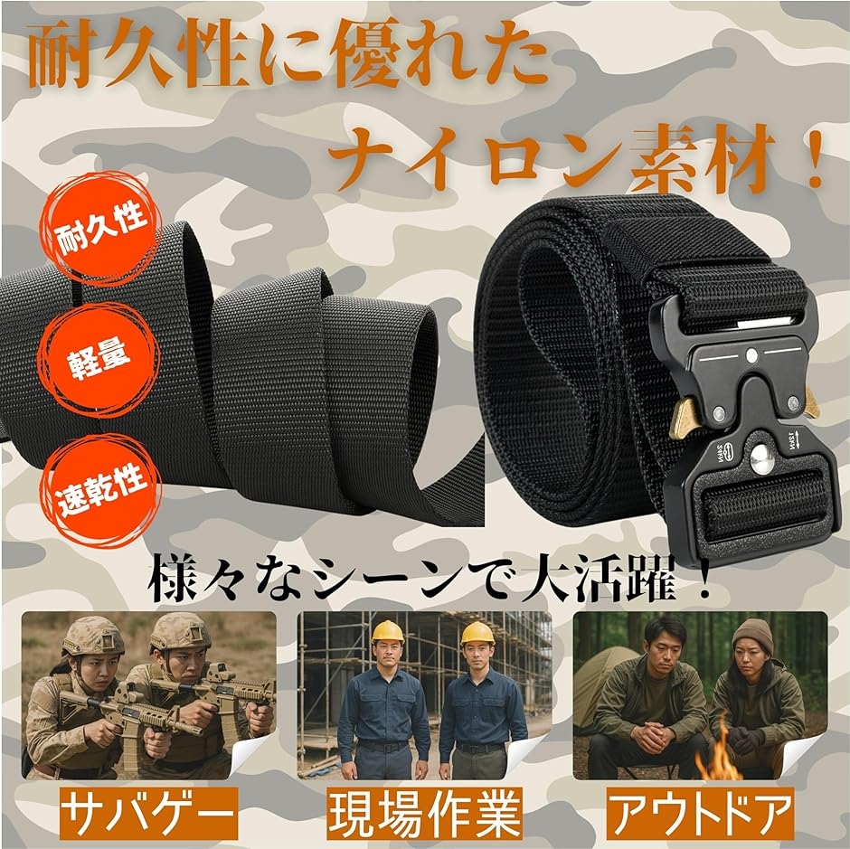 丈夫さ・快適さ・機能性を兼ね備えた、究極のタクティカルベルトが登場。 「タクティカルベルト 高耐久 メンズ レディース ユニセックス 作業用 作業ベルト ミリタリーベルト サバゲーベルト アウトドアベルト ナイロンベルト 耐久性 軽量」 過酷な環境下でも、頼れる相棒としてしっかり腰をサポート。
