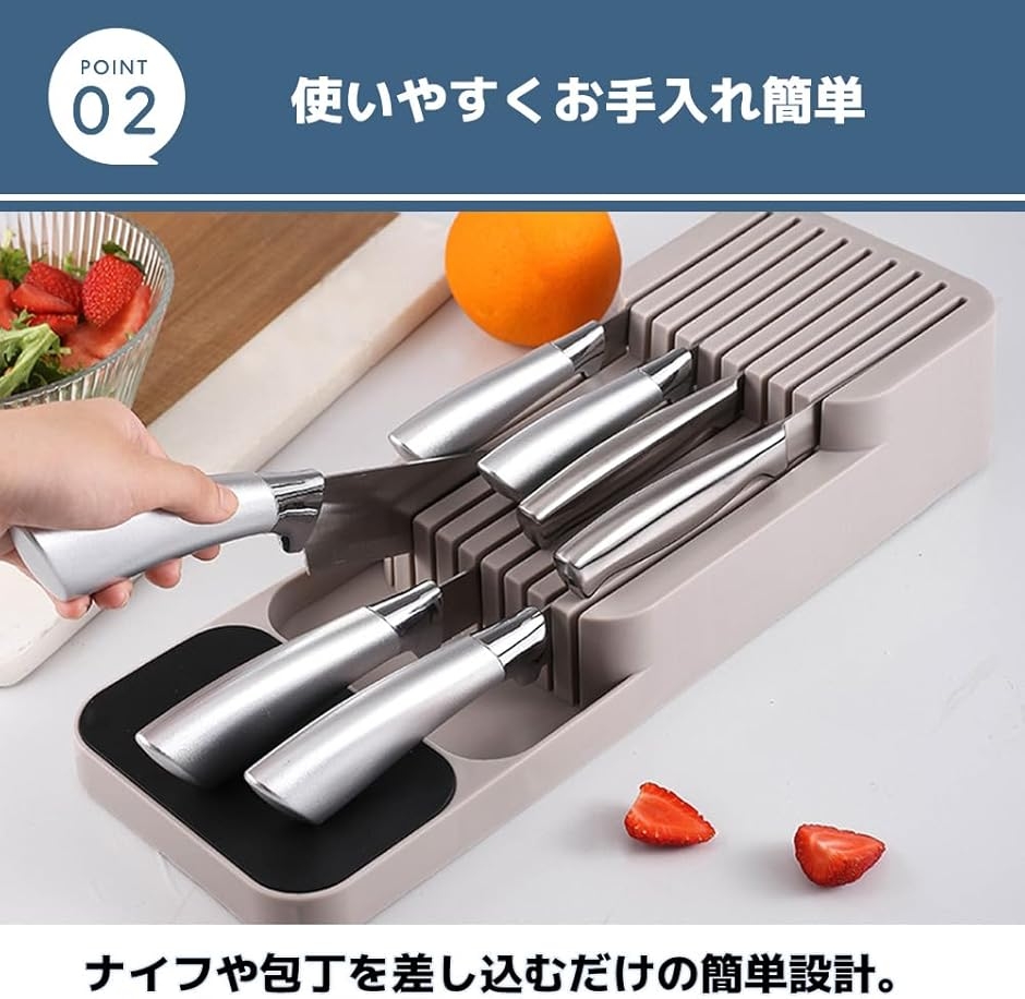 「使いやすくお手入れ簡単」ナイフや包丁を差し込むだけの簡単設計。