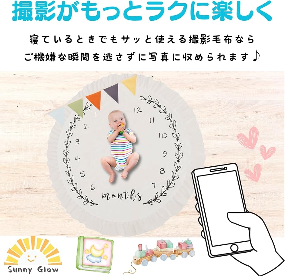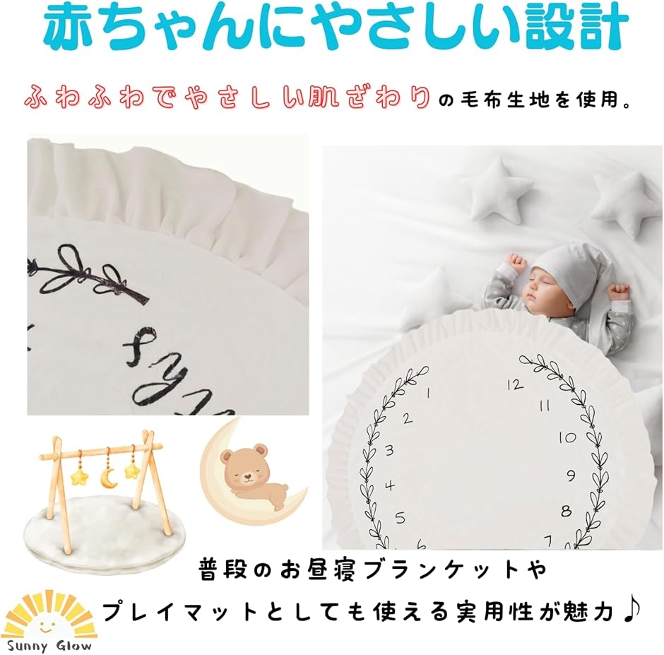 | 商品名 | 赤ちゃん ベビーマット 月齢フォト 円形 ニューボーンフォト セルフ サニーマット ベビー シンプル 撮影 小道具 背景 |