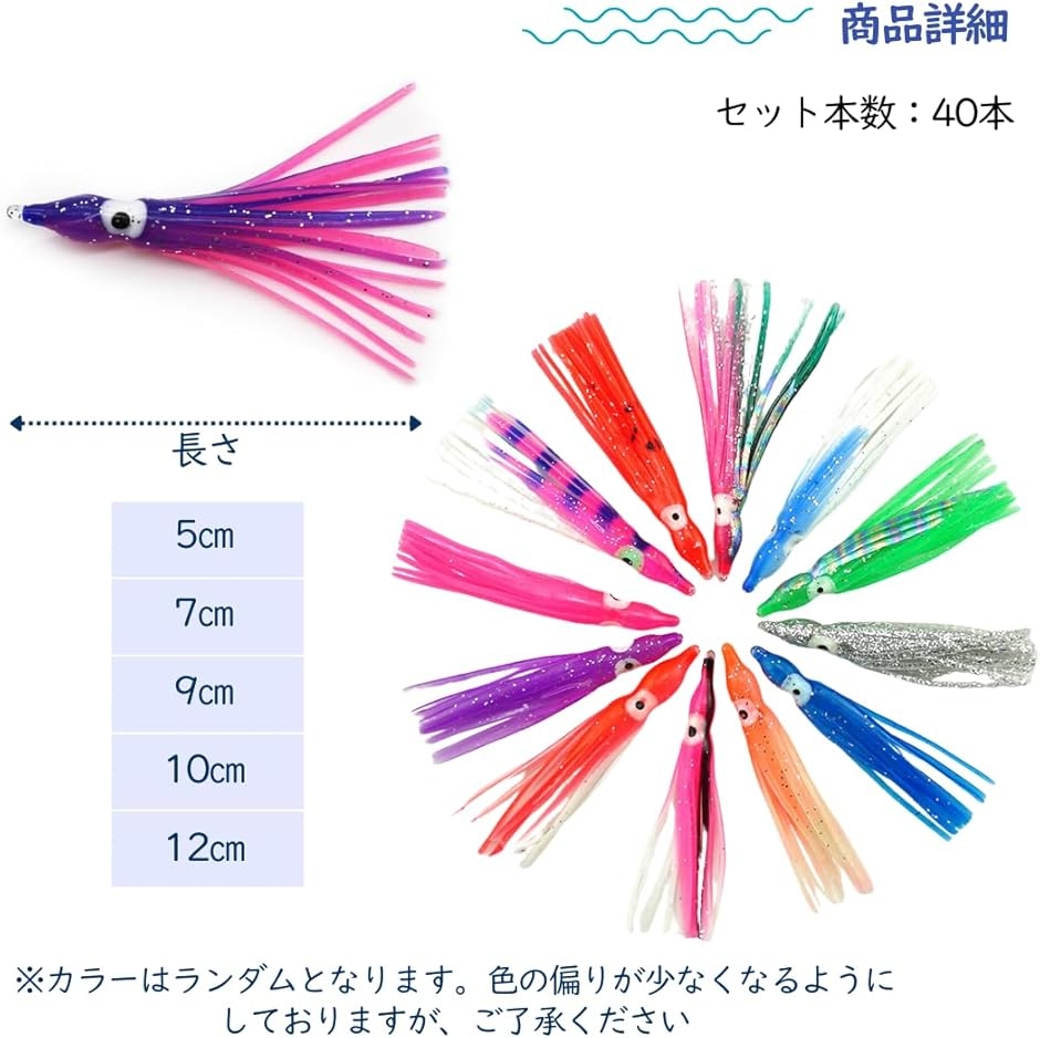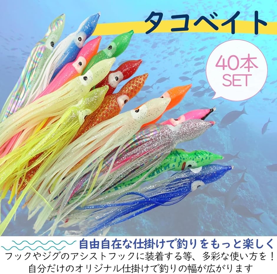 | 商品名 | タコベイト ルアー 仕掛け 釣り インチク 擬似餌 夜光 タコエギ 青物 自作 大容量 40本セット 5cm |
