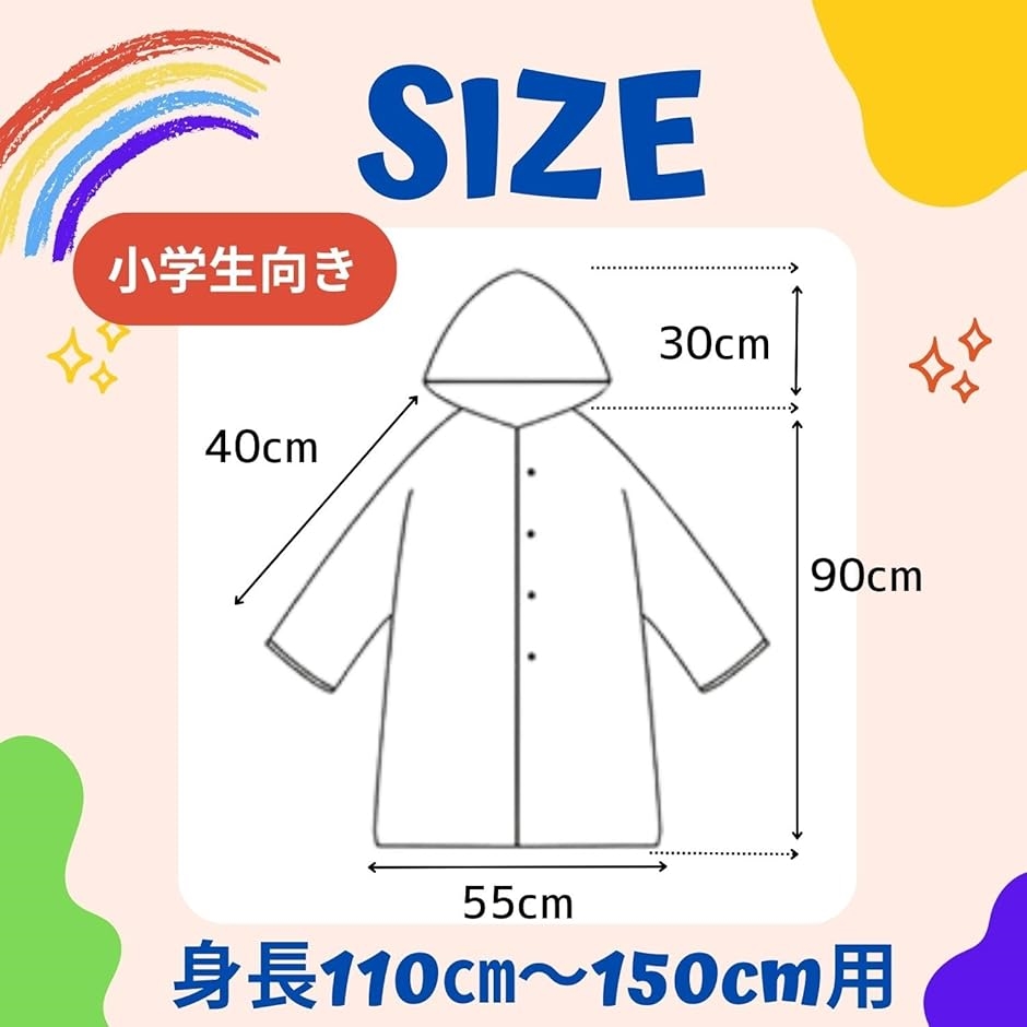 小学生用レインコートです 低学年から高学年まで使用できるサイズ感 自転車での移動や通学時におすすめな簡易レインコートです