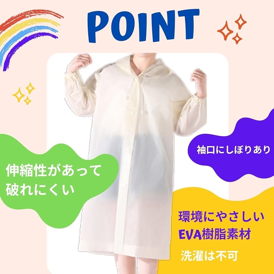 遠足やお出かけ、レジャーや林間学習、修学旅行などの雨対策におすすめです 透明でシンプルで使いやすい簡易カッパです 学校行事用に大量注文も可能です