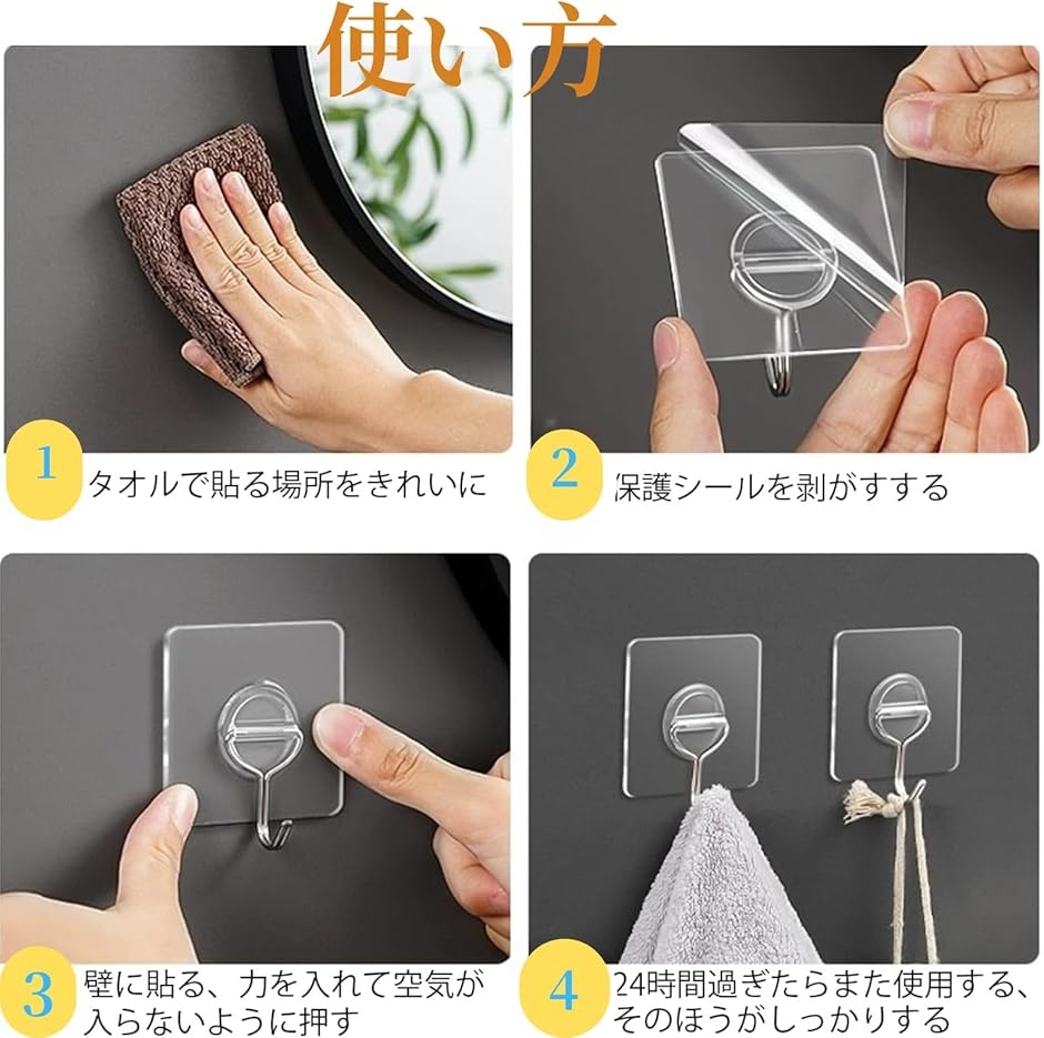 フックの位置を変えたければ、フックを外し、透明フックを水洗いし、ドライヤーで乾かすだけで粘着力が回復します・