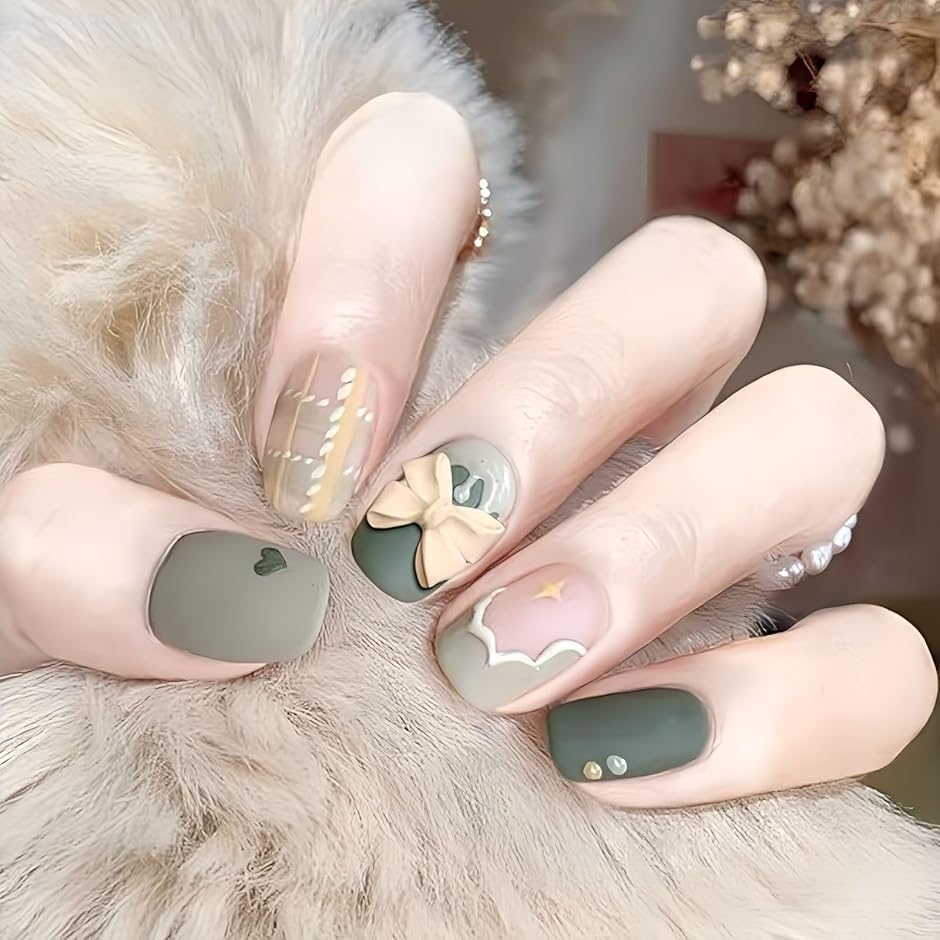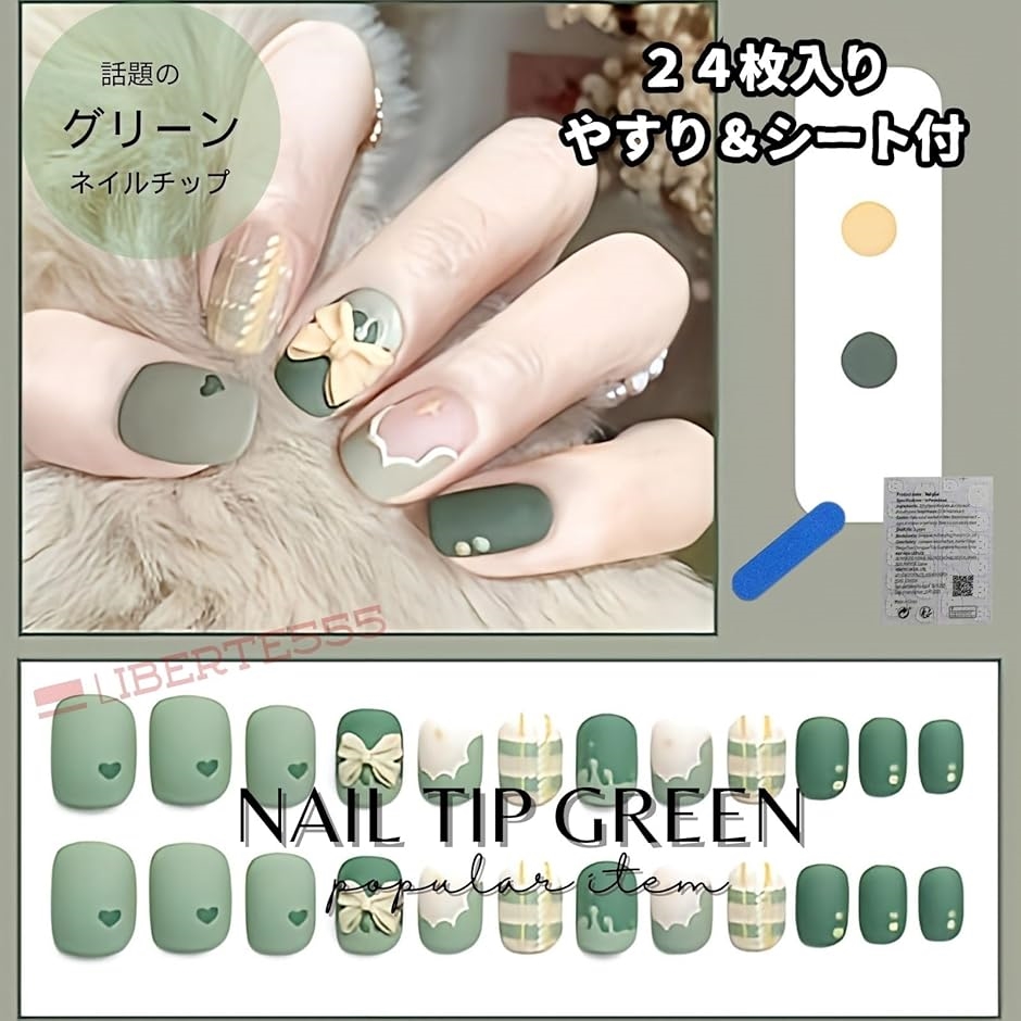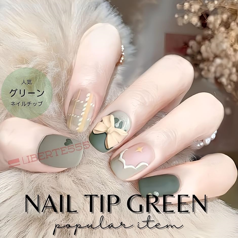 | 商品名 | ネイルチップ 緑 グリーン シール 韓国 付け爪 シンプル ロング |