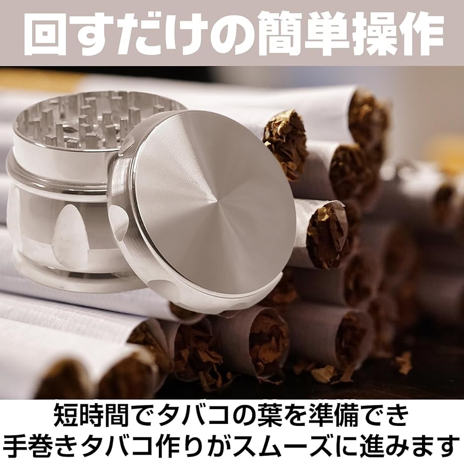 「煙草専用 グラインダー」 この煙草専用グラインダーは、葉タバコをスムーズにクラッシュし、手巻きタバコ用シャグを簡単に作成します。
