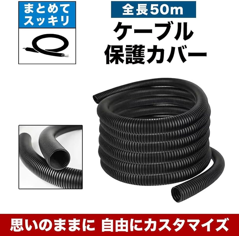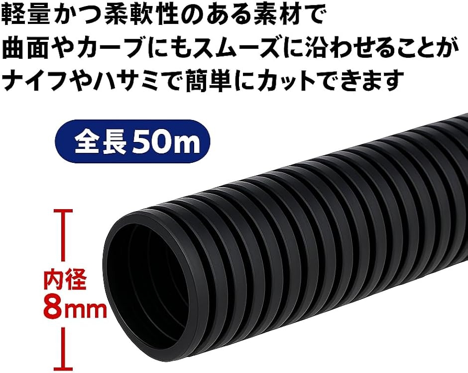 | 商品名 | 配線チューブ コルゲートチューブ 黒 50m ケーブル保護 家庭・自動車用 |