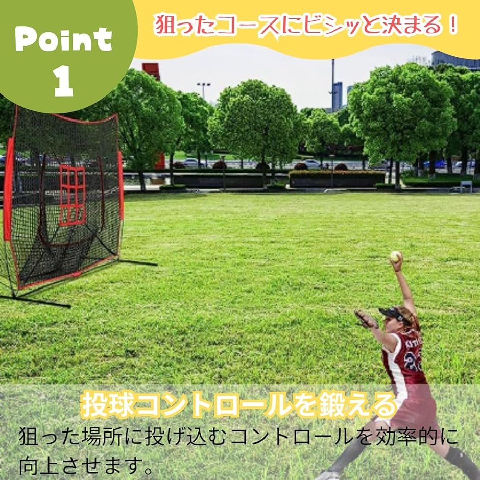 「投球コントロールを鍛える」 ストライクゾーンを明確に意識して投球練習ができるため、狙った場所に投げ込むコントロールを効率的に向上させます。