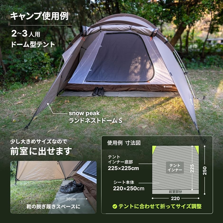 「用途」キャンプのグランドシートとしてテントインナーの下の地面に直接に敷くのが基本的な用途となります。