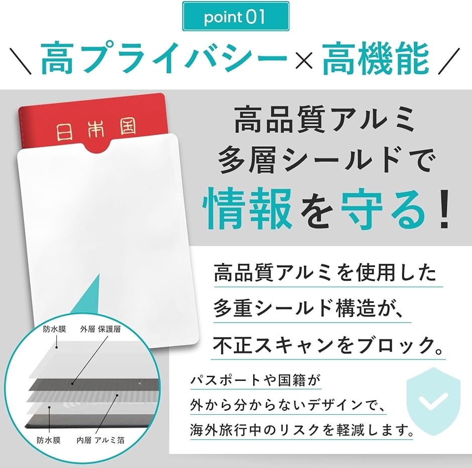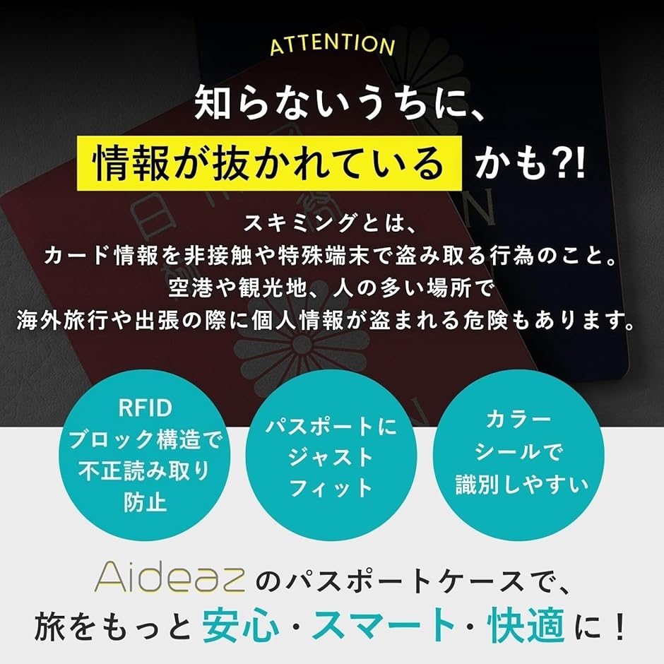 | 商品名 | パスポートケース スキミング防止 RFID 磁気防止 海外旅行 判別シール付 |
