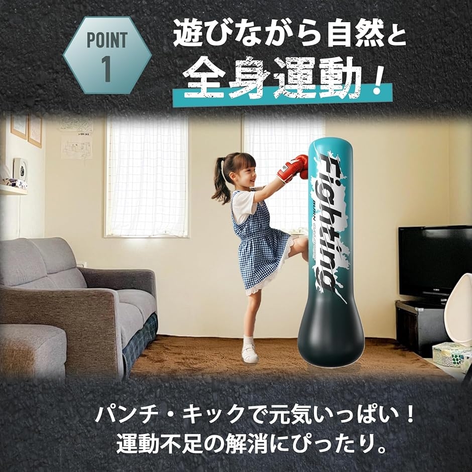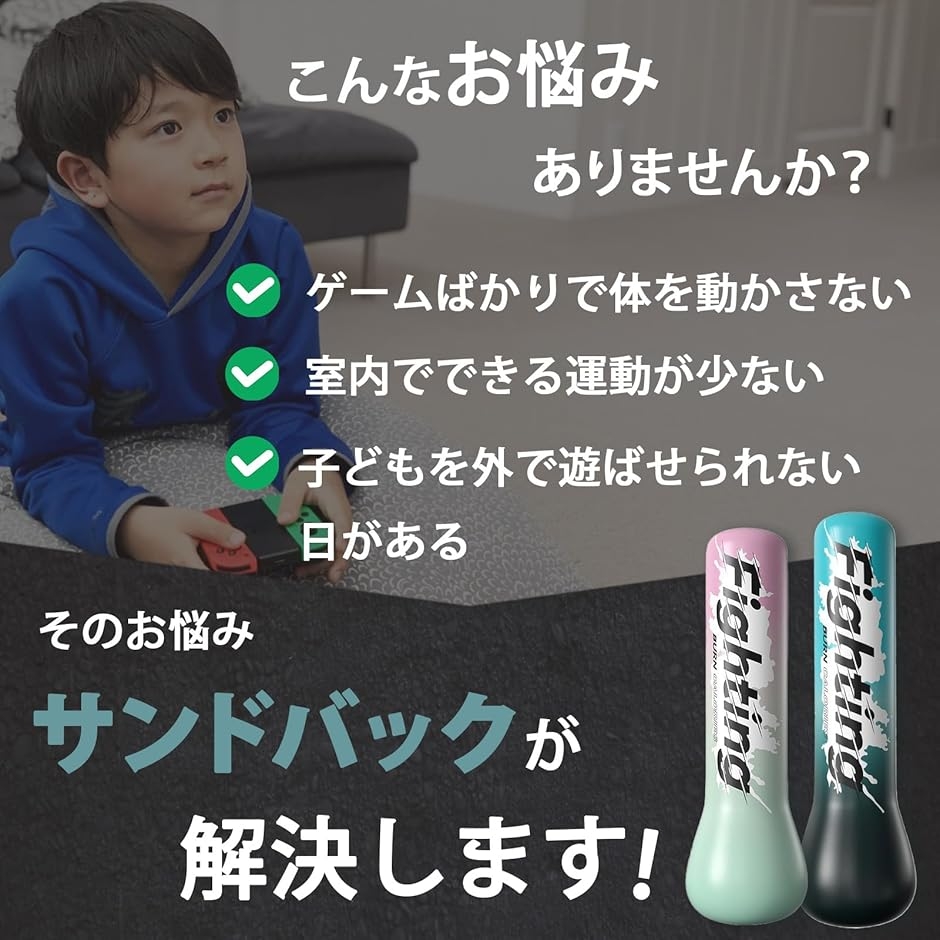 「雨の日も室内で運動不足解消」雨の日や外出を控えたい時など屋内での運動不足解消に最適ですトレーニングはもちろん家族で楽しく遊びながら体を動かせるサンドバックとしても活躍します。