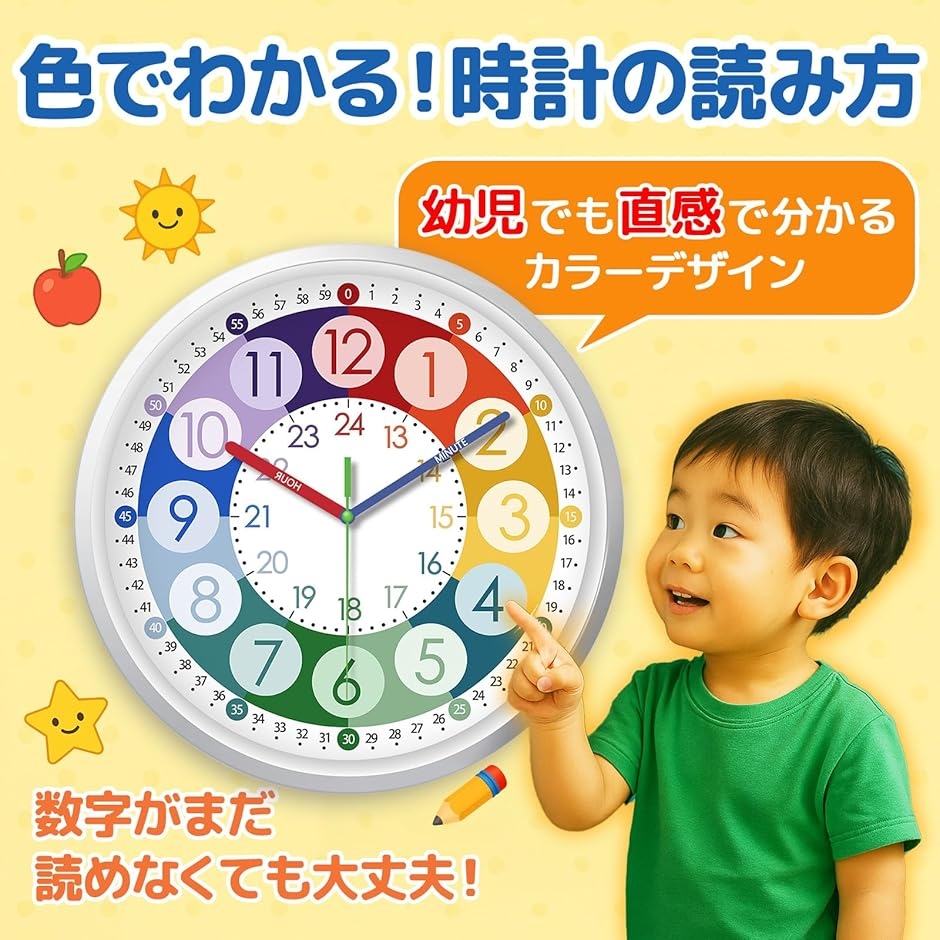 | 商品名 | 知育時計 壁掛け 子供用 色分け 学習時計 時間学習 算数教材 小学生 勉強 知育 |