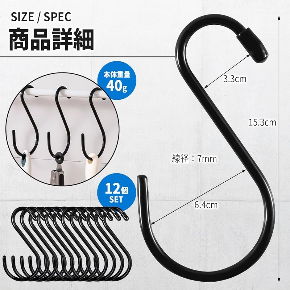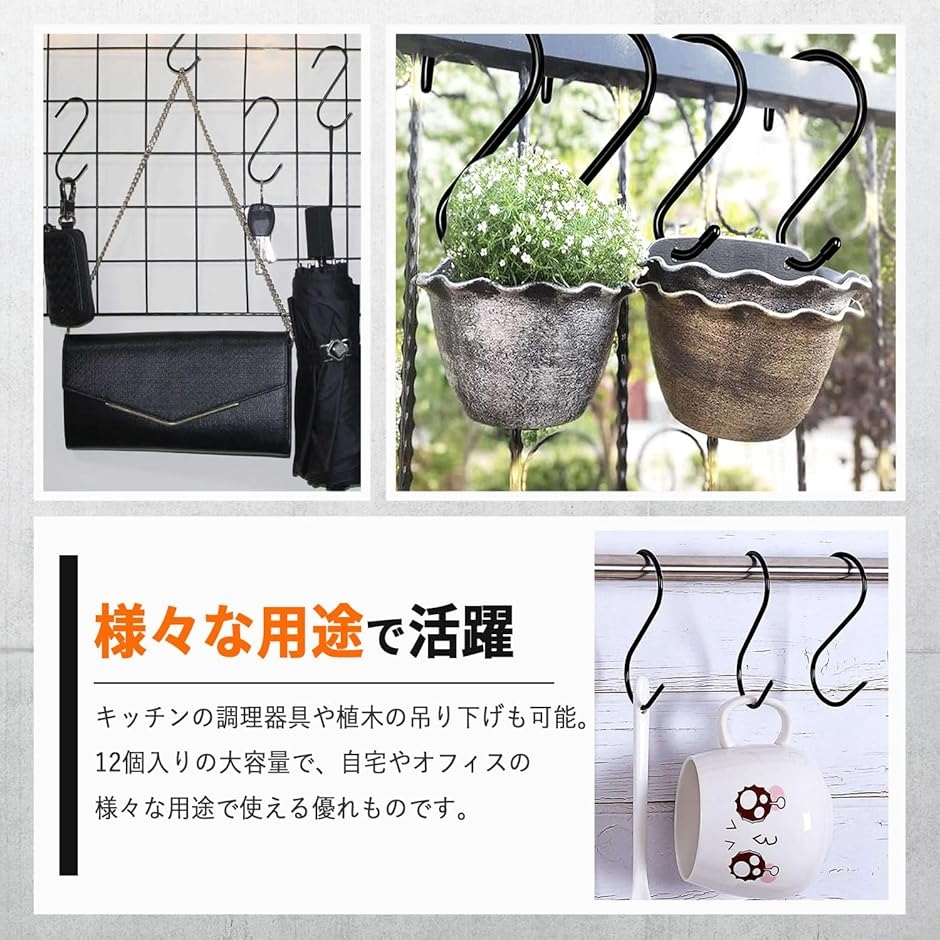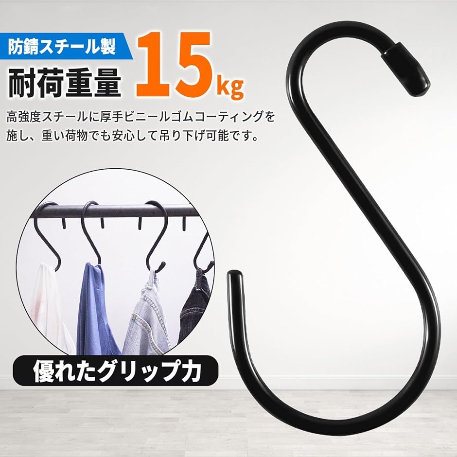 | 商品名 | S字フック 12個 大きい 頑丈 滑り止めゴムコーティング 落ちない 吊り下げ 屋外 |