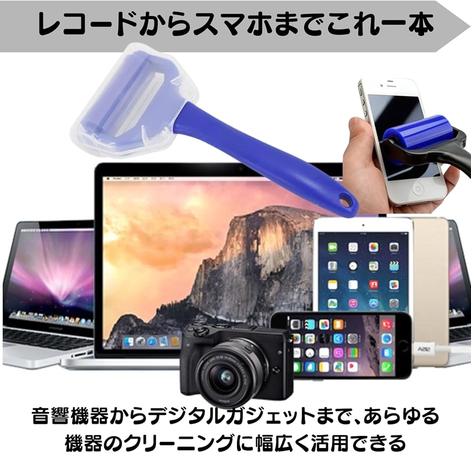 レコード、CD、スマホなど多様なデバイスに対応し、これ1つあれば、音響機器からデジタルガジェットまで、あらゆる機器のクリーニングに幅広く活用できます。