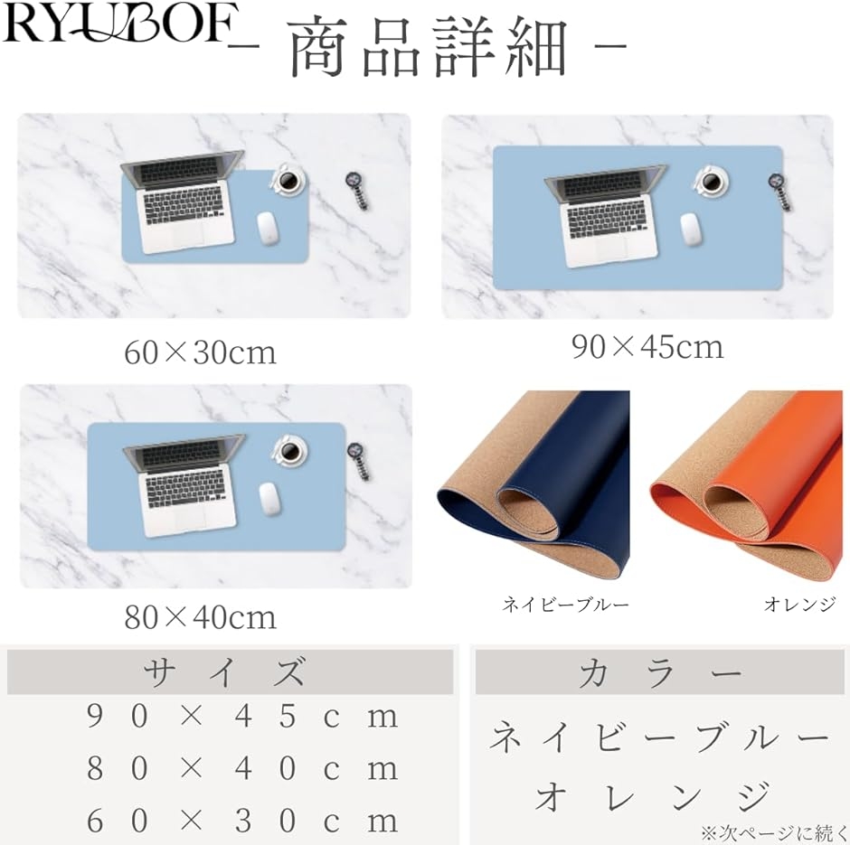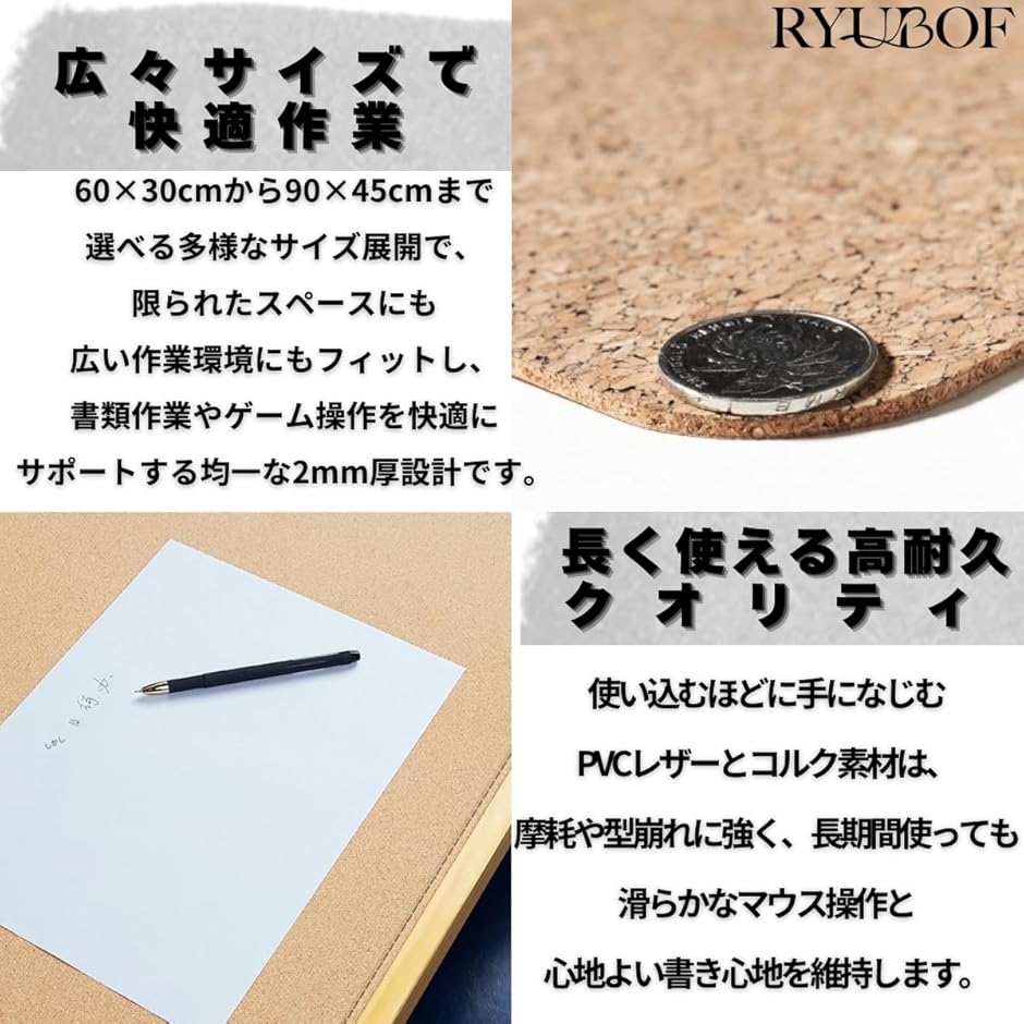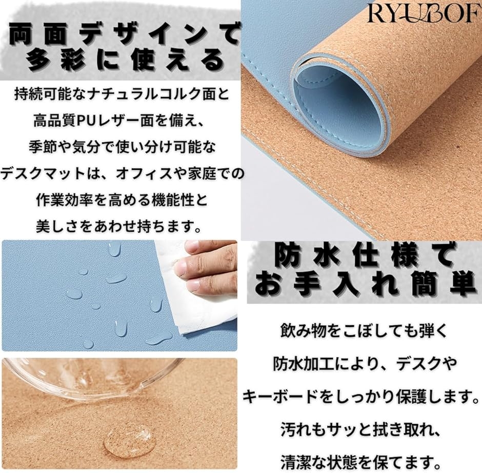 | 商品名 | RYUBOF ナチュラルコルク 両面デスクマット 大型 マウスパッド 防水 PUレザー デスクプロテクター キーボードマット オフィス 家庭 ゲーム 卓上マット 特大 PVCレザー |