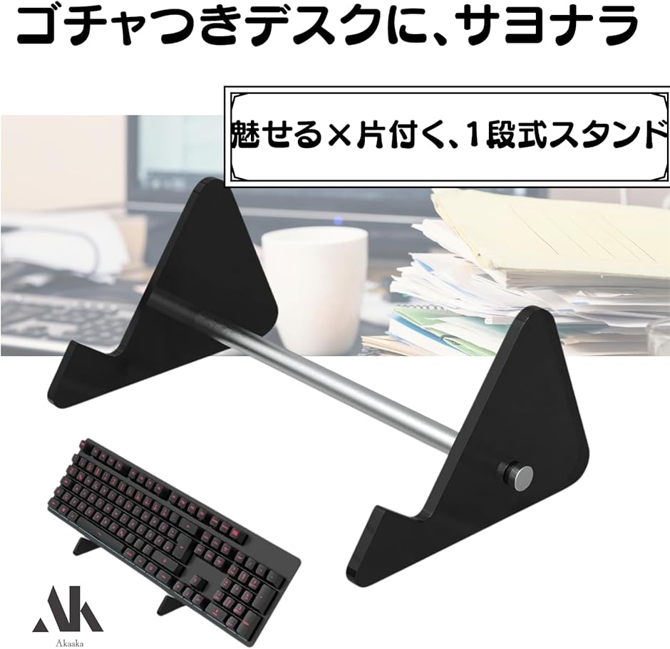 「1段式ディスプレイ」いつも使うキーボードを美しくディスプレイできる1段タイプのスタンドです。