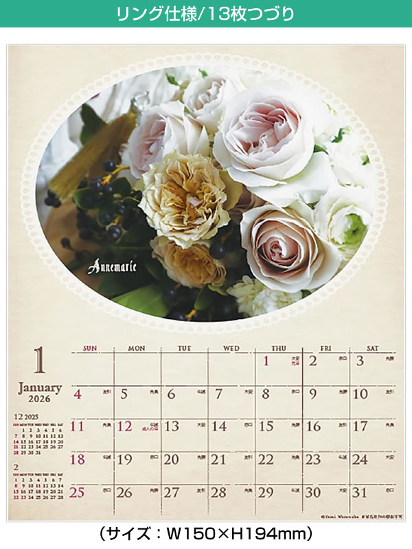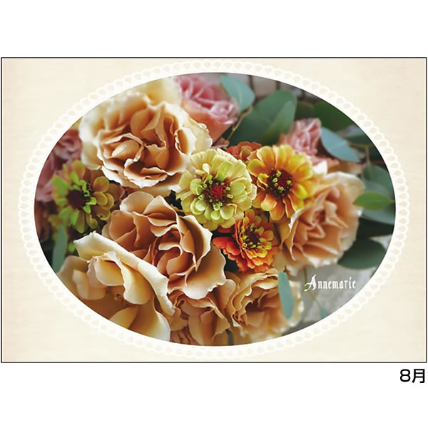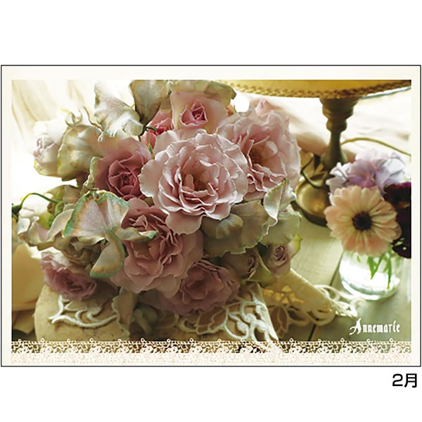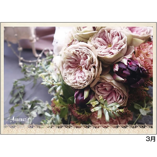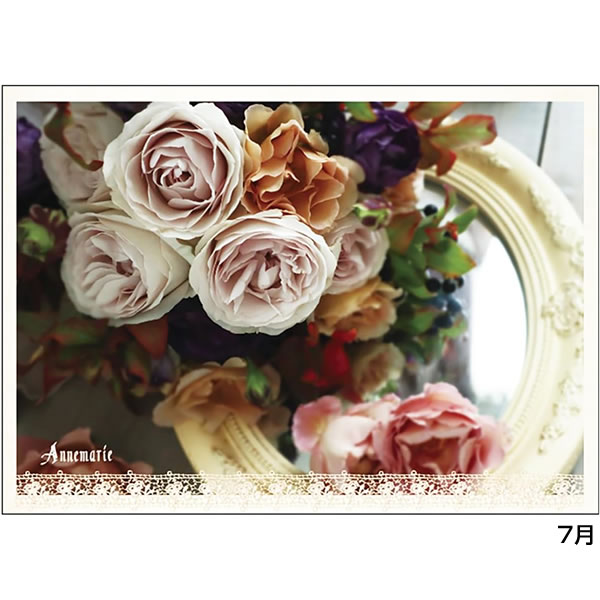 ヨーロピアンテイスト溢れる、クラシカルで美しいローズアレンジメントの卓上カレンダーです。