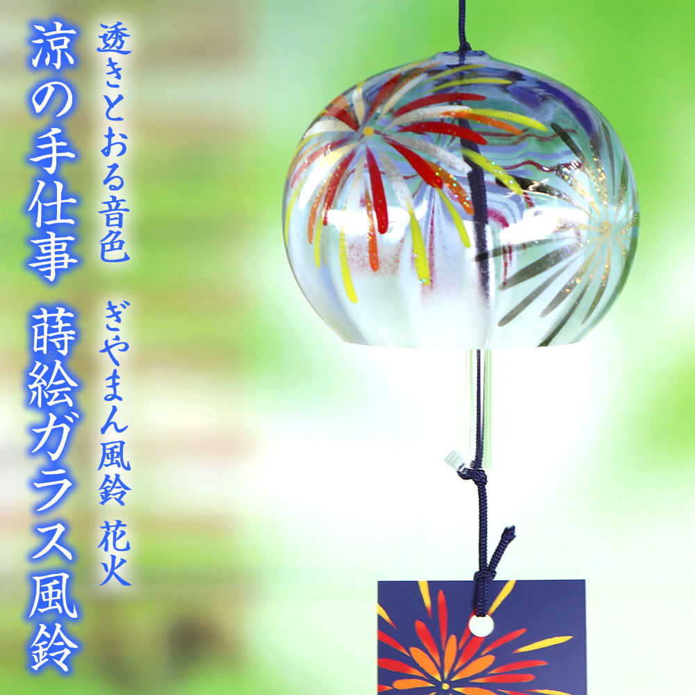 風鈴 ガラス ぎやまん風鈴 花火(ブルー) R-63 会津喜多方 蒔絵仕上げ 手作り風鈴 木之本