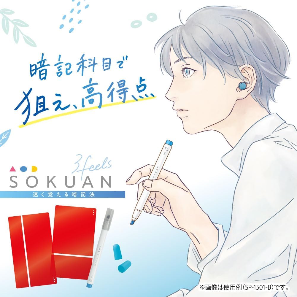 速暗!3feels 暗記用ペン 4mmマーカーペン シート 耳栓 ミントの香り ブルー 勉強 SP-1501-B ソニック 速く覚える暗記法
