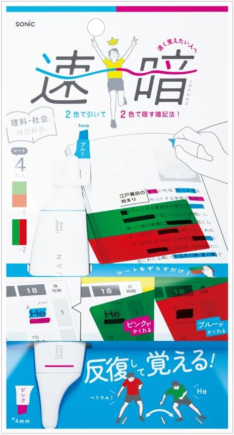 速暗! 暗記用マーカー 2色で引いて覚える 4枚シート付 赤 緑 勉強 SP-8925-RG ソニック 暗記科目に!