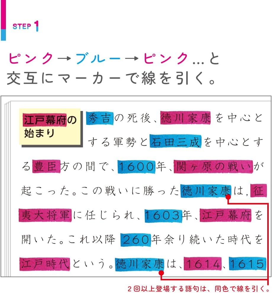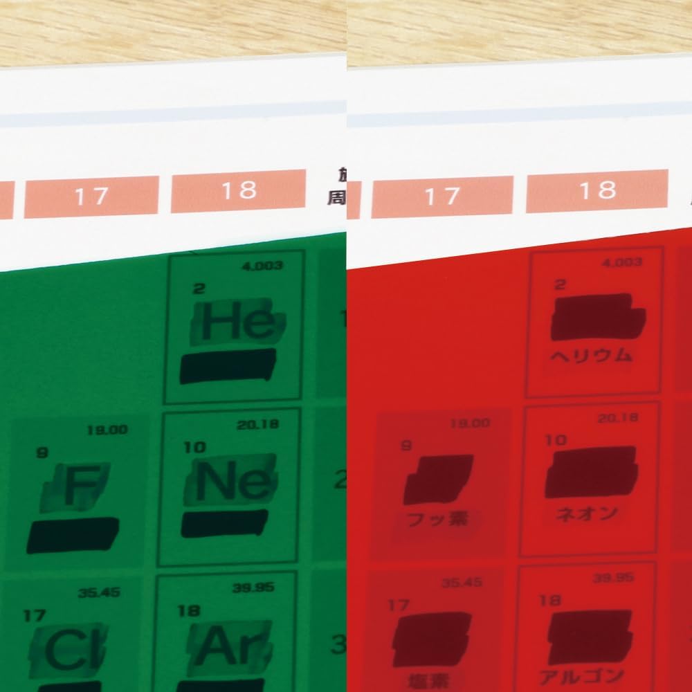 2色マーカーで重要な部分を色分けし、暗記シートを重ねて使うことで、見せたい箇所と隠したい箇所を自在にコントロールできます。