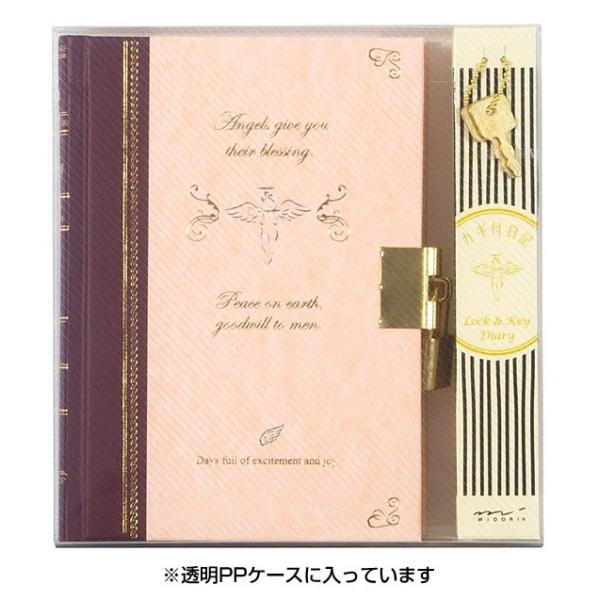 日記 日記帳 鍵付き 天使柄 12370 ミドリ A6変形 368頁 横罫 フリータイプ 秘密をガードしてくれる、天使の鍵付き日記 (ZR)