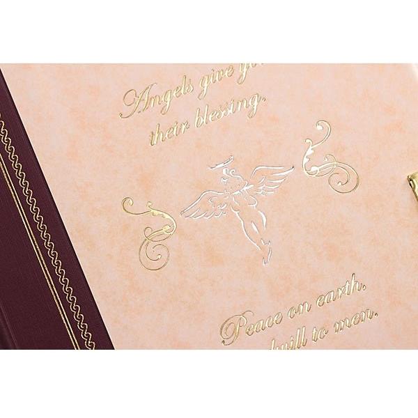 ピンク色の表紙は、幸運の象徴の天使が箔押しでデザインされています