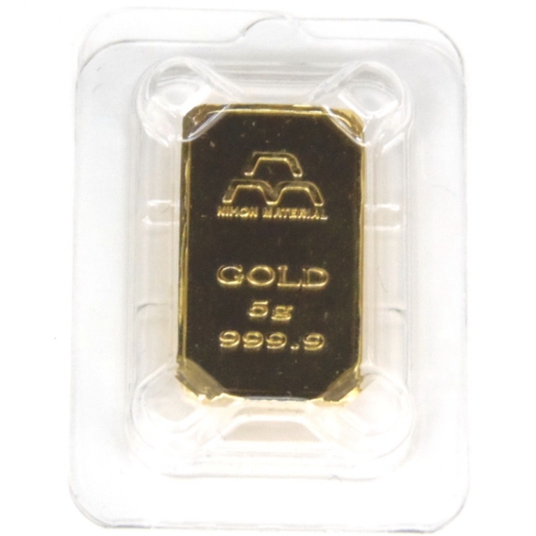 【コメント】: 日本マテリアルのインゴット(ゴールドバー)5gです。コレクションにいかがでしょうか。是非この機会に!この他当店では1g,10g,20g,30g,50g,100gのインゴットを取り扱っておりますので、ぜひご覧くださいませ。