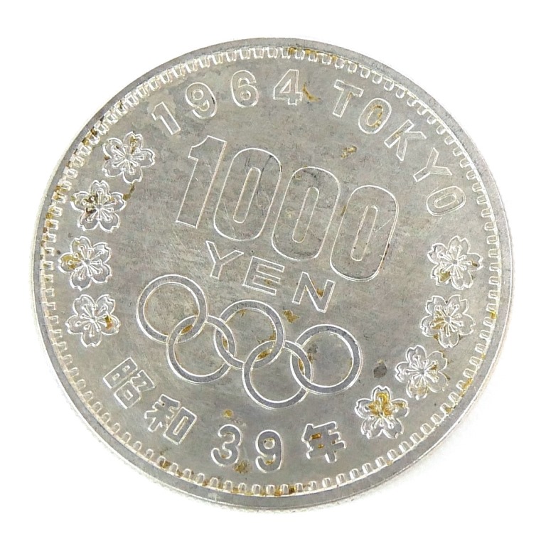 【コメント】: 1964年東京オリンピック記念1000円銀貨です。コレクションにいかがでしょうか。この他当店ではいろいろな記念硬貨を取り扱っておりますので、ぜひご覧くださいませ。