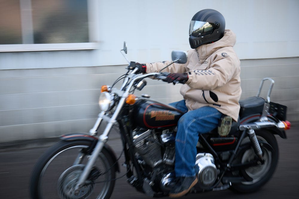シールドは3段階調整での開閉、オープン時にはしっかり静止しクローズ状態では高い合成で帽体と同化し走行時の突風を防いでくれます。