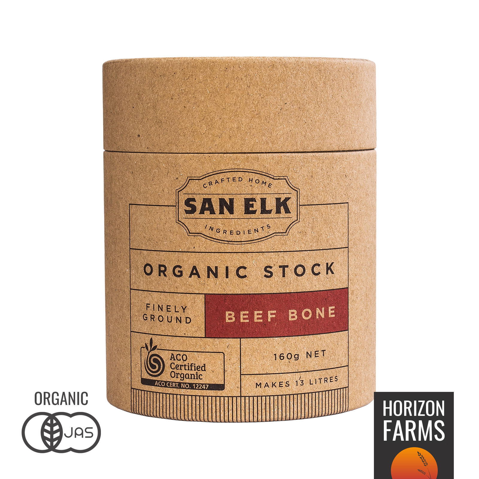 有機JASオーガニック認証を受けた、オーストラリア産の放牧グラスフェッドビーフストックパウダーです。1個160g入りです。成長促進ホルモン剤や抗生物質を使うことなく育った牛の骨、野菜、ハーブ、スパイスを丹精込めて丁寧に手作業でブレンドしています。毎日のお料理に手軽に風味と旨味を加え、身体の喜ぶ栄養が詰まったプレミアムなオーガニックストックです。