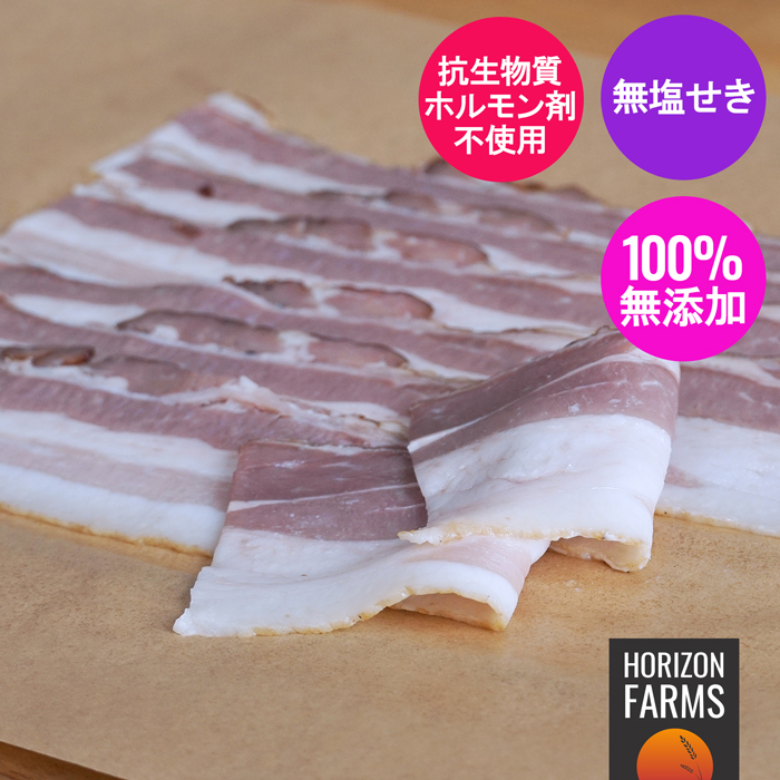 HORIZON FARMSでは様々な種類の無添加・無塩せきベーコンをご用意しております。画像をクリックしてページをご確認いただけます。