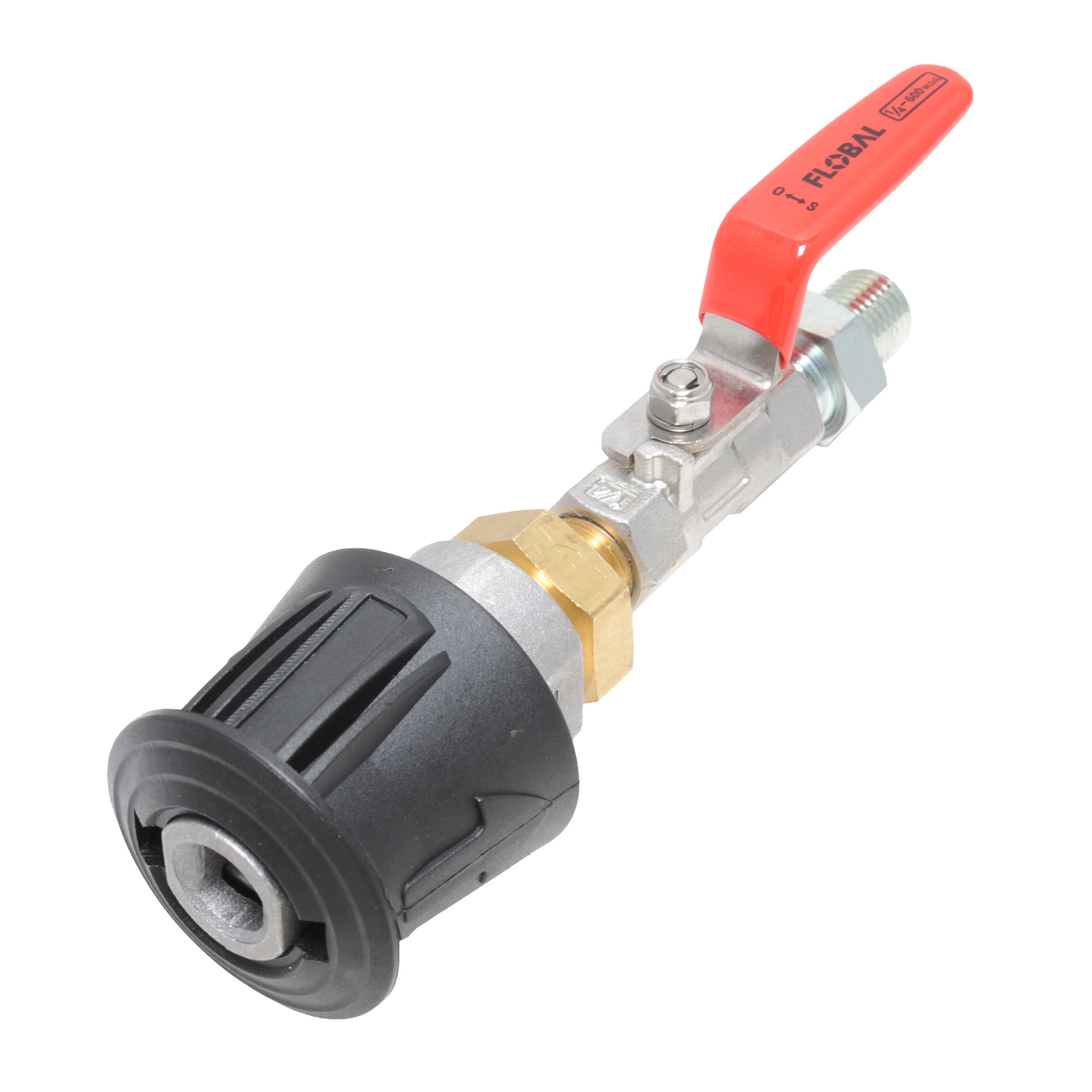 高圧ホースの先端(トリガーガンとの接続部分)にこのバルブを接続し、その先に洗管ホースを接続するバルブです。
