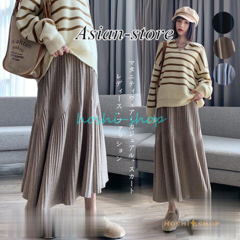 マタニティスカート レディース 着痩せ リブニット スカート 無地 マタニティウェア ウエスト調整 産前 産後 妊婦服 カジュアル ハイウエスト Aライン 妊婦着